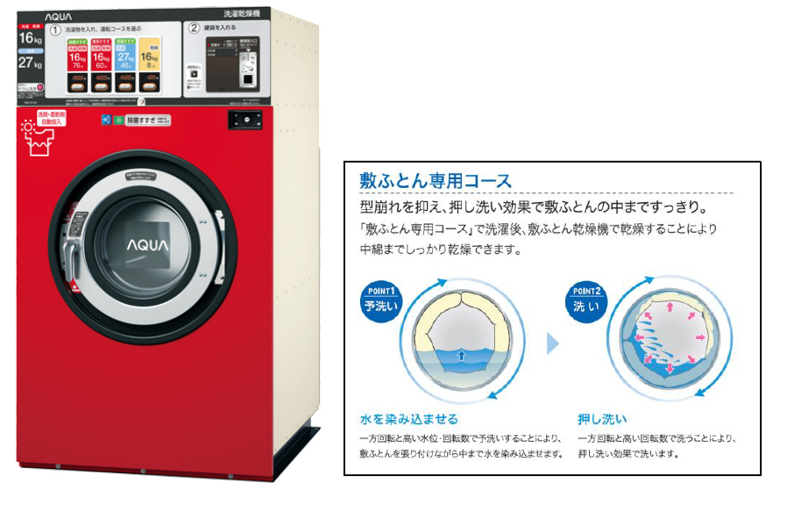 AQUAはコインランドリー機器のパイオニア として、より高品質なふとん洗いを目指し